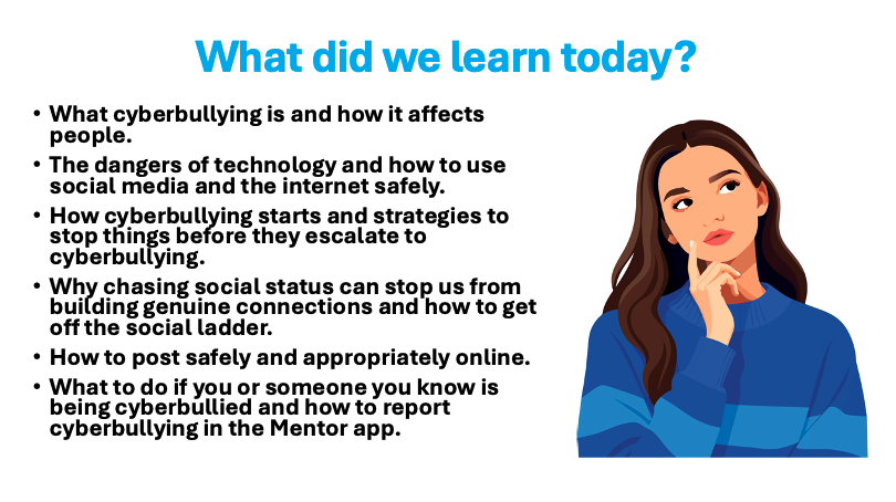 • To understand how to respond when cyberbullying happens, including reporting.