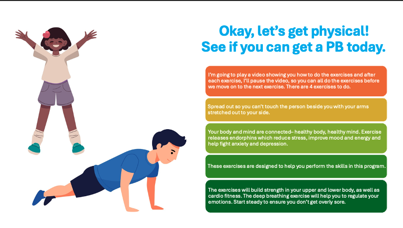 We understand that there is considerable information in the slides, which is intentional, as to change behaviour requires students to understand the “why” as well as the “how”. The slides are meant to be read/explained by the teacher – not the students. As the teacher becomes more familiar with the content, they do not have to read the slides verbatim and can explain the concepts in their own words, moving quicker through the slides where students understand the concepts and slower through the slides where more understanding is required. The delivery can be adjusted to suit the age and experience of each class, which will differ from school to school.