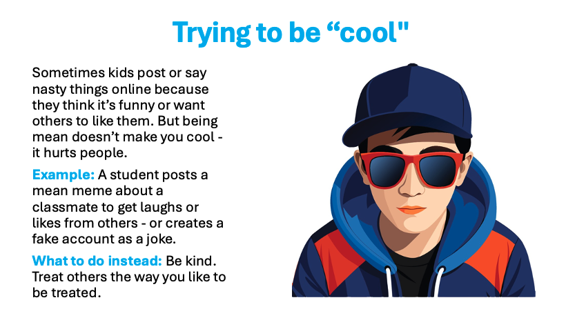 • To understand what cyberbullying is, and how it begins.